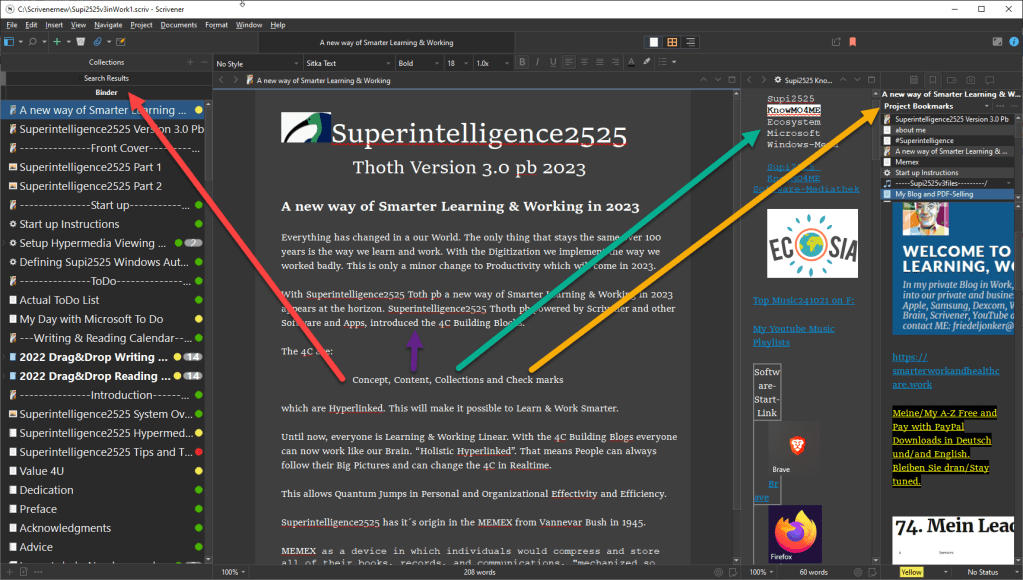 Windows Scrivener Version: 3.1.2.0 (1812589) 64-bit – 18 Oktober 2022 with 4 C Building Blocks and iPadOS 15.7, iPhone with Scrivener App Version: 1.2.2 last changes 07/2022